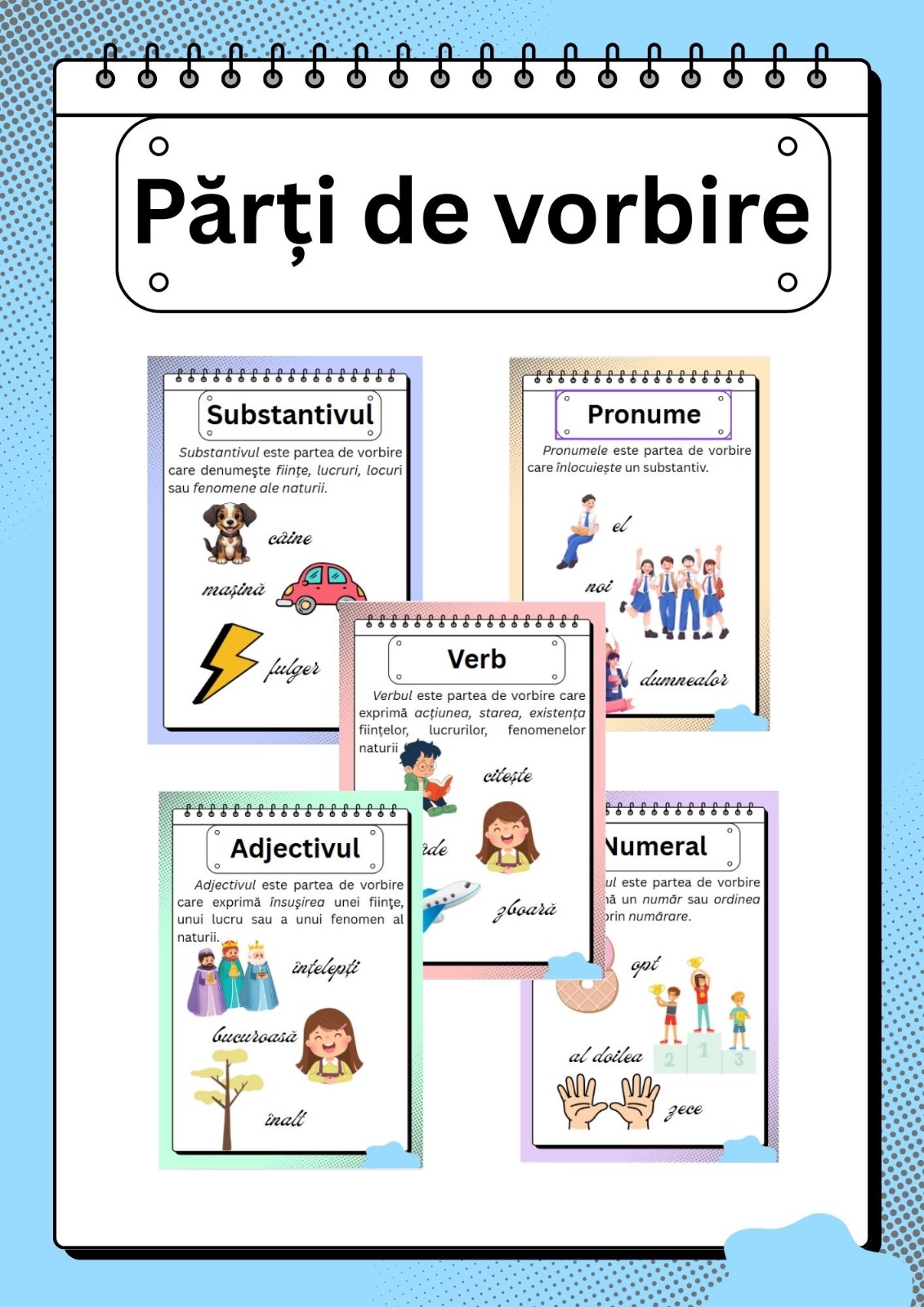✍ Fiecare categorie este explicată simplu și ilustrată cu exemple practice, astfel încât elevii să poată înțelege și reține mai ușor noțiunile de bază ale gramaticii.