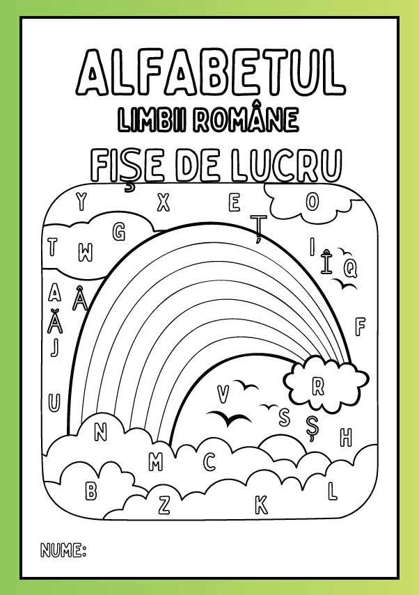 ✔️ Fișe pentru toate literele alfabetului românesc (A–Z + diacritice)