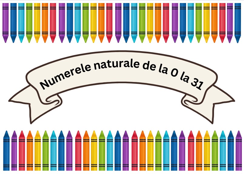 Acest set educațional digital conține toate numerele de la 0 la 31, un titlu decorativ și o bordură cu creioane ce poate fi decupată și folosită pentru realizarea unui panou mare, colorat și prietenos. ✂🖍
